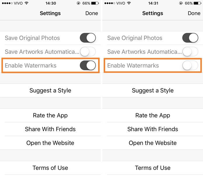 Como retirar marca dágua de fotos do App Prisma: mais configurações