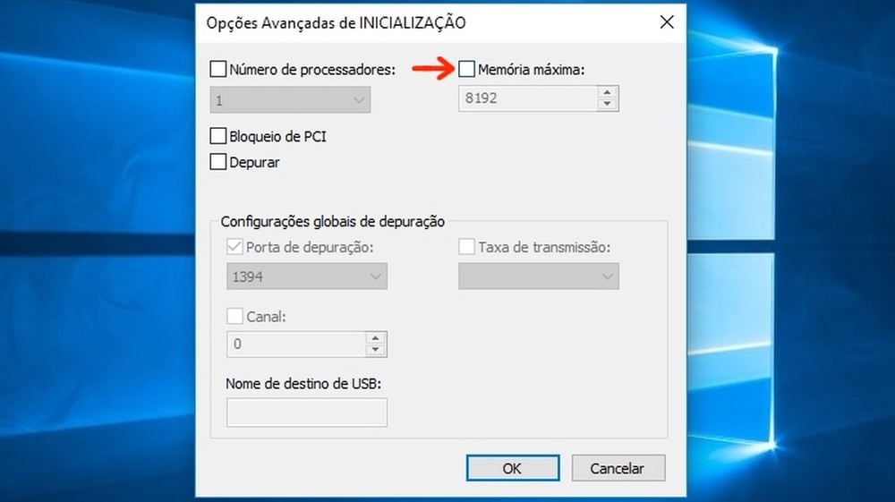 - Desmarque a caixa da opção “Memória máxima”;
