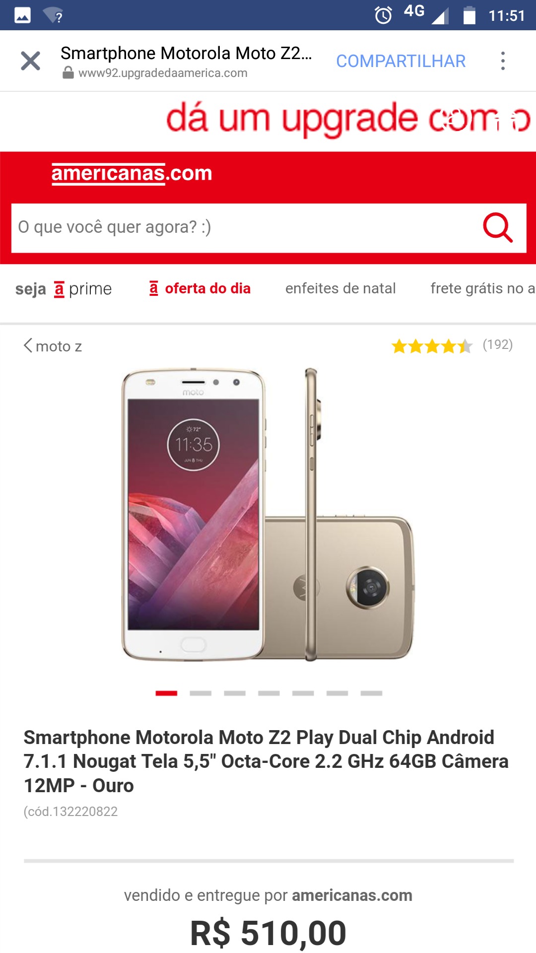Em seguida o site foi disponibilizado em um domínio muito semelhante ao original, no caso do nosso exemplo, o domínio mistura o nome do próprio Americanas e o nome de uma campanha real do site, a campanha Upgrade.